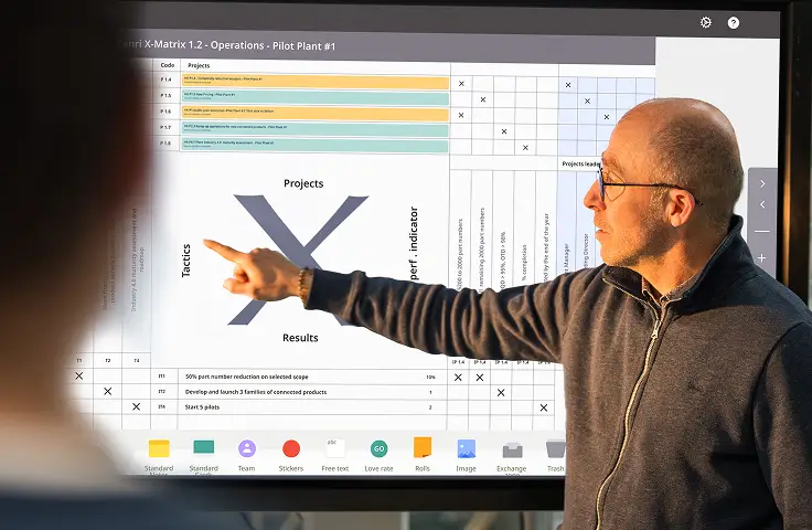 Born in Lean and popularized by the success at Toyota, an Obeya is where people come together to collaborate, look at the information together and decide on next actions. The Obeya connects strategy, performance, and people in one visual flow. Through Visual Management, goals and KPIs become visible so everyone stays aligned, reacts fast, and improves daily. This shared understanding builds trust, accelerates decisions and powers a Daily Management System that drives Lean success across every tier.