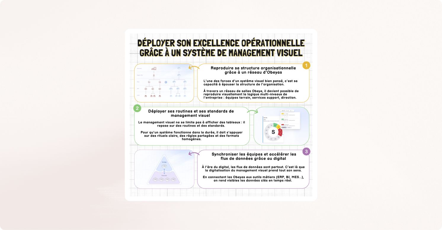 En reproduisant la structure de l’entreprise, en déployant des routines efficaces, et en connectant les données en temps réel, le réseau d’Obeyas devient un outil puissant de transformation managériale. C’est ainsi qu’on déploie un système d’excellence opérationnelle solide, durable… et profondément humain.