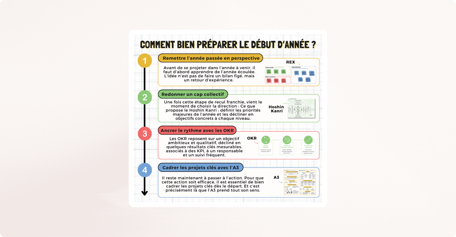 Avant de se projeter dans l’année à venir, il faut d’abord apprendre de l’année écoulée. Pourtant, c’est là que réside toute la philosophie du Kaizen : observer, comprendre, tirer les leçons de ce qu’on a vécu. L’idée n’est pas de faire un bilan figé, mais un retour d’expérience.