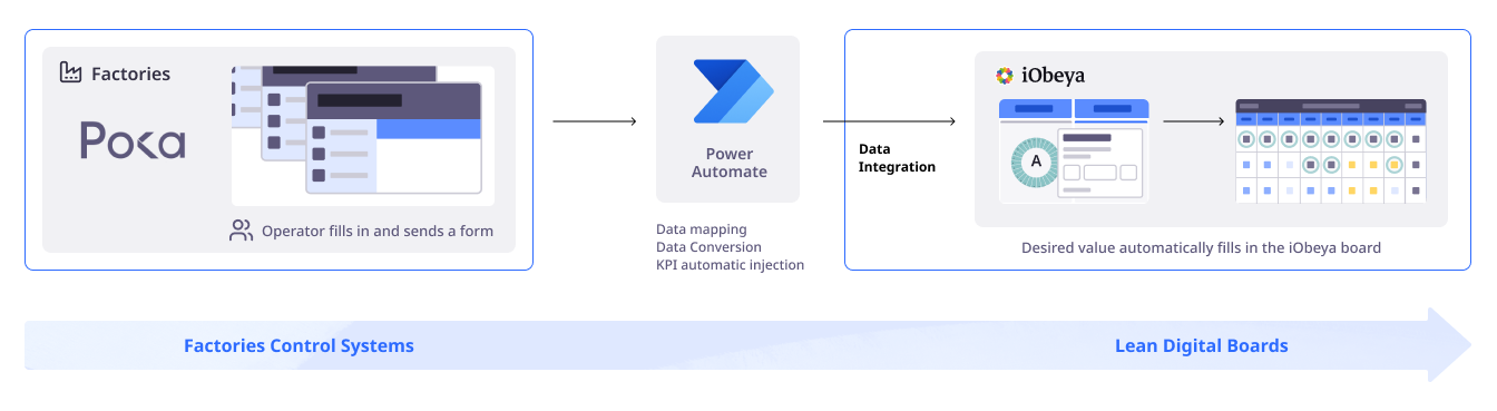 Data mapping, conversion, and automation setup were implemented using Power Automate to bridge Poka and iObeya seamlessly.