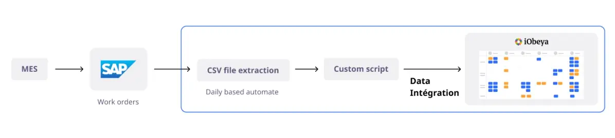 To keep production work orders updated on digital visual boards, team members had to manually transfer data from SAP ERP to iObeya. This repetitive and non-automated process was labor-intensive, error-prone, and slowed down workflow efficiency.